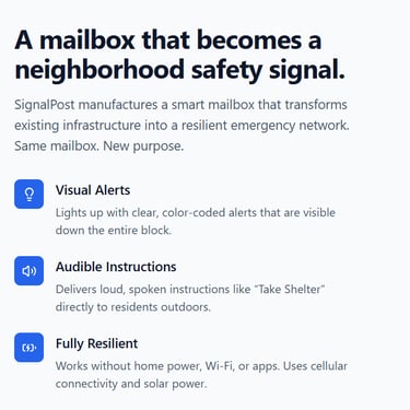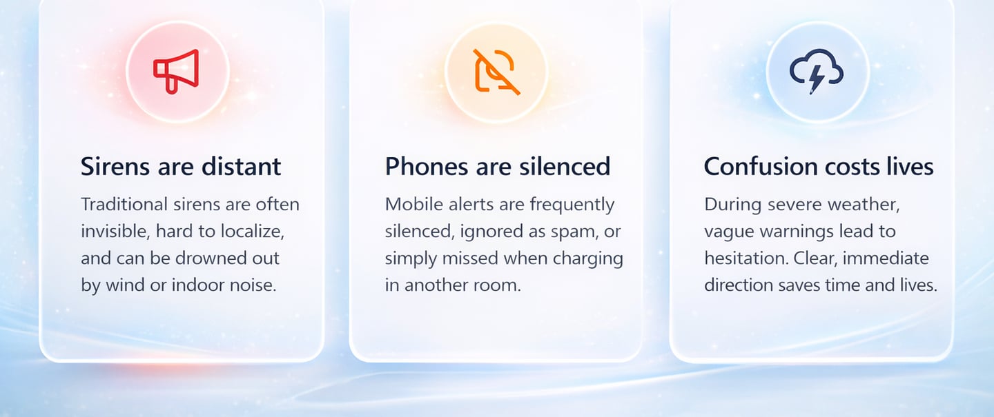 Communities need alerts that are local, visible, and impossible to ignore. Current systems leave too many gaps when seconds matter.